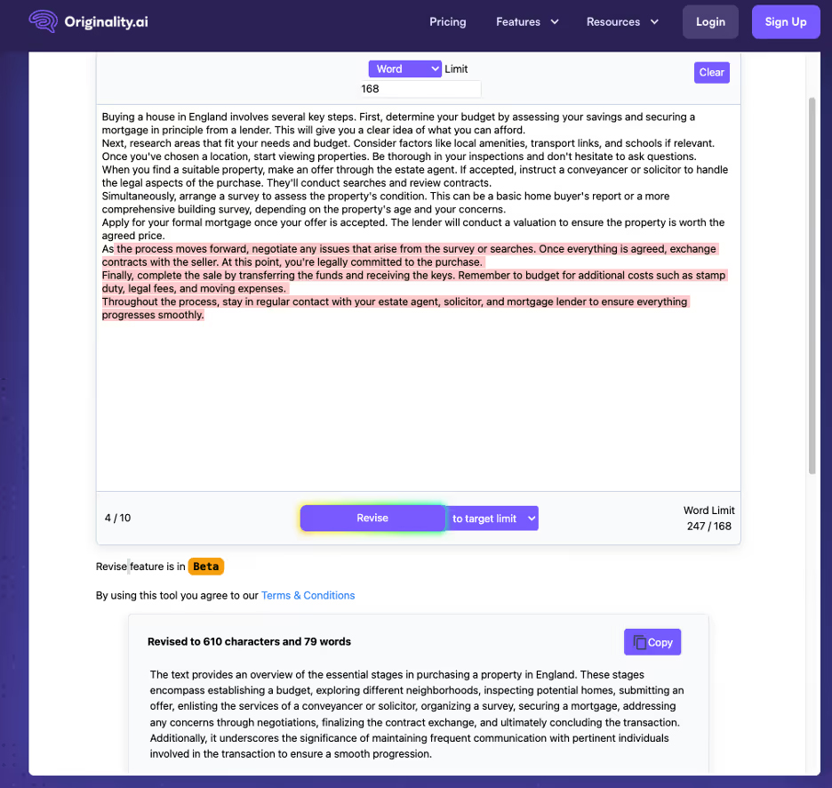 Similarly AI Plagiarism and Fact Checker tool Originality has a character counter feature that rewrites content to your target limit – but again, you need to supply the content, and our tests showed it to be fairly inaccurate.